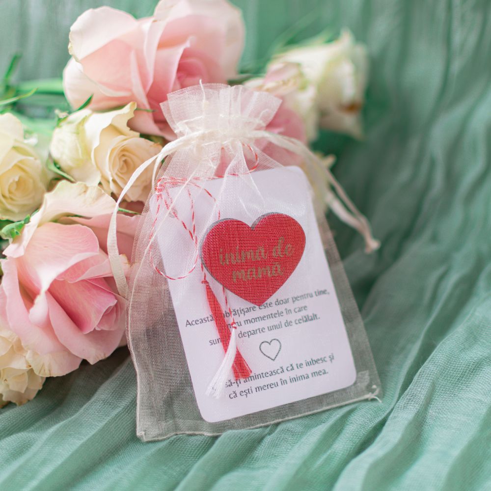 - Mărțișorul: Inima în culoarea aleasă, cu ac de broșă pe spate.