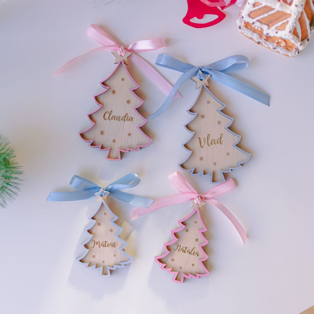 Adăugați un element special și personalizat bradului dvs. cu acest set unic din lemn de cedru. Perfect pentru întreaga familie, fiecare brăduț poate fi personalizat cu numele dorit, oferind o notă personală și unică sărbătorilor de iarnă.