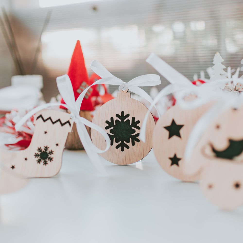 Îmbogățește-ți bradul de Crăciun cu un set unic și elegant de globulețe din lemn, cu un fundal vibrant din fetru. Aceste decorațiuni adaugă un farmec rustic și o notă de tradiție sărbătorilor tale, fiind disponibile în mai multe culori pentru a se potrivi perfect cu decorul tău.